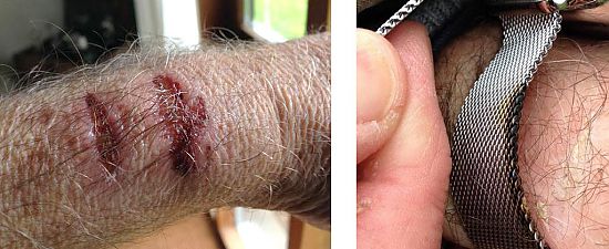 Потерпевший в интервью Ekstra Bladet рассказал, что смартчасы нагрелись настолько, что не только нанесли ему ожоги, но и подпалили миланский сетчатый браслет. Судя по фотографиям, травмы действительно серьёзные. Но правдива ли история их возникновения?