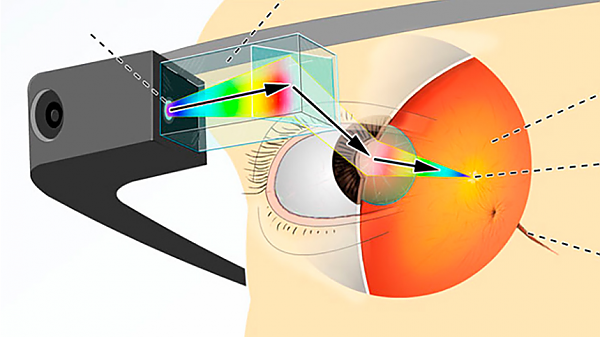 Изображение в Google Glass создается мини-проектором и проецируется через призму прямо на сетчатку глаза наблюдателя.