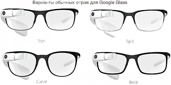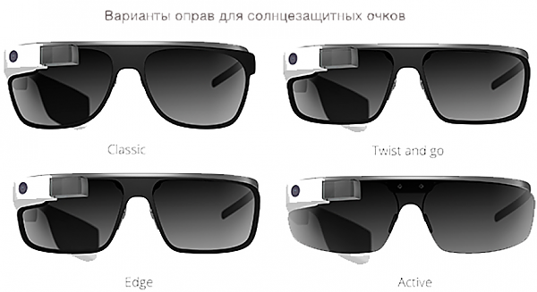 Производитель отмечает, что Google Glass можно запросто использовать как с солнцезащитными линзами, так и с линзами для коррекции зрения.